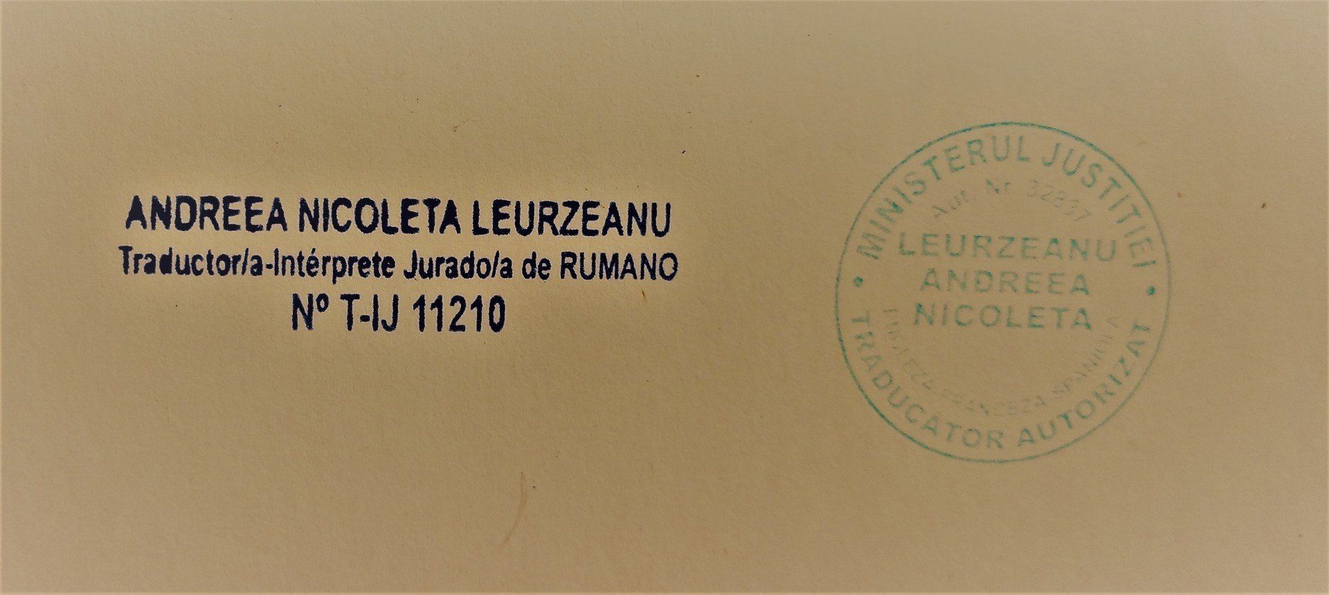 En tant que traductrice et interprète certifiée par le Ministère de la Justice de Roumanie et par la Ministère des Affaires Étrangères, de l'Union Européenne et de la Coopération d'Espagne, j'effectue de traductions assermentées des documents officiels dans les suivantes combinaisons linguïstiques :